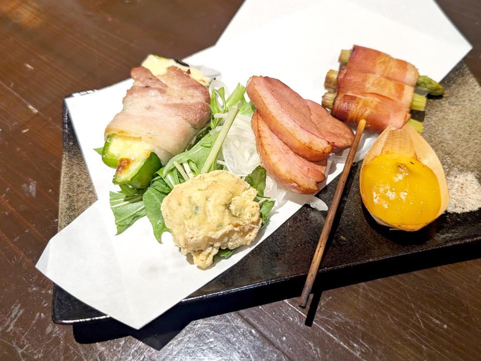 ⇒合鴨・アスパラベーコン串の燻製